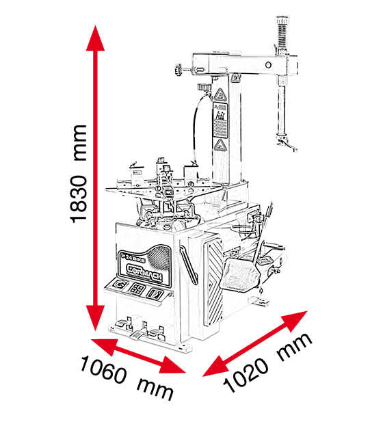 Semi-automatic tyre changer, designed to mount and demount tyres for motorcycle, moped, ATV*, Go-kart and turf maintenance vehicles. With a traditional bead breaking system and self-centering turntable it can accommodate rims from 6" to 24" as supplied. Made in Italy.