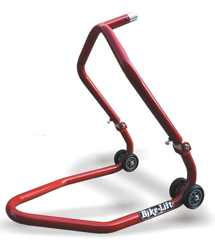 FS-11 Universal front stand for the handlebar stem. It allows easy removal of the wheel and of the fork rods. It includes different sized pins to fit into the steering stem hole of any bike.