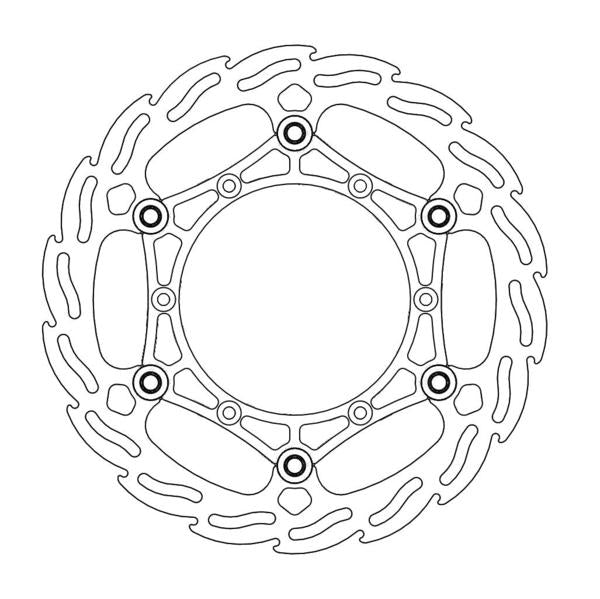 DESIGN MEETS PERFORMANCE Next to the premium quality steel alloy which is used to give Moto-Master brake discs unsurpassed friction characteristics and durability, much of the superior performance of a Moto-Master Flame disc lies embedded within its unique FLAME design. MAXIMUM CONTROL Flame shaped venting slots and outer perimeter ensure an equal amount of contact surface between the brake pad and disc throughout the whole rotation of the disc. This results in smooth and more predictable braking action which allows you to brake harder. OPTIMAL COOLING & REDUCED WEIGHT Flame shaped venting slots are lined up in the linear direction of movement which allows oversize slots without them chipping away at the brake pads. DISC & BRAKE PAD CLEANING The Flame shaped outer perimeter and venting slots overlap to continuously clean the whole brake pad contact surface while hot gasses are immediately evacuated. REDUCED BRAKE PAD WEAR The Flame design ensure the brake pads are always evenly supported on the rotor surface. This prevents the pads from tilting under high pressure. SUPERIOR DISC FINISH Specialized laser cutting technologies provide a razor sharp cut which won?t corrode. Disc thickness is parallel within a 0.003mm margin. This eliminates any possible brake lever pulsation while giving unsurpassed rider feedback.The Flame range is huge and covers everything from Motocross minibike to Dakar, and from Scooter to Superbike racing. Road / Road Racing / Offroad / Rally / Supermoto / ATV