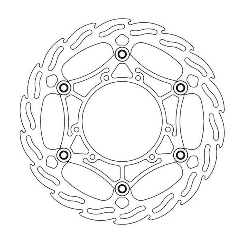 Moto-Master Flame Discs are manufactured to the tightest tolerances and specifications using a specially hardened premium quality stainless steel. The FLAME design aids in the cooling and cleaning of the contact surface. The FLAME Fixed discs are laser cut, CNC machined, and precision double-grinded for perfect fitment and flatness.