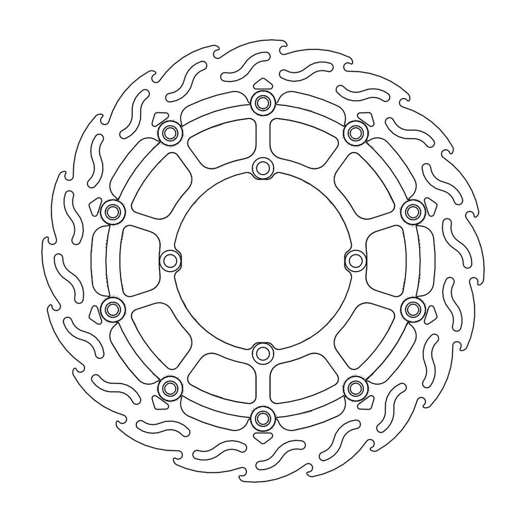 MAXIMUM CONTROL Flame shaped venting slots and outer perimeter ensure an equal amount of contact surface between the brake pad and disc throughout the whole rotation of the disc. This results in smooth and more predictable braking action which allows you to brake harder.