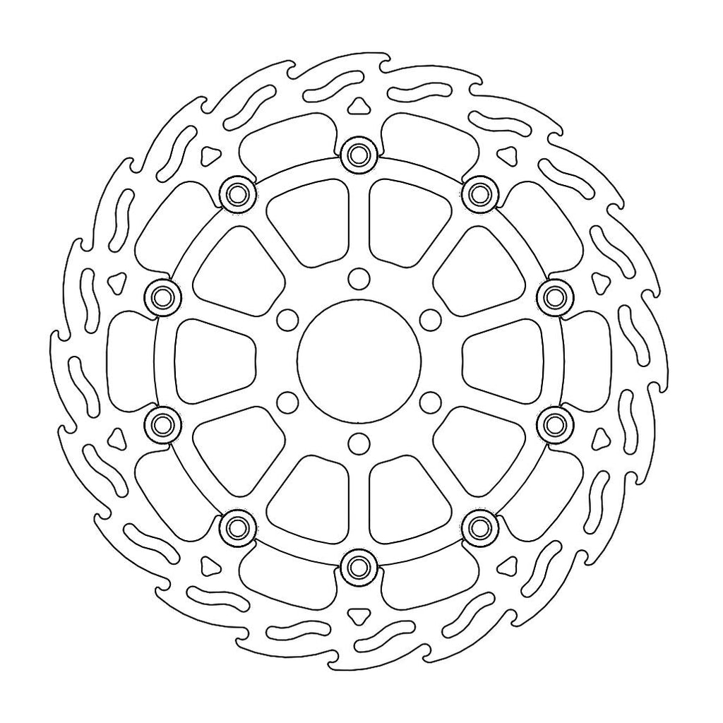 MAXIMUM CONTROL Flame shaped venting slots and outer perimeter ensure an equal amount of contact surface between the brake pad and disc throughout the whole rotation of the disc. This results in smooth and more predictable braking action which allows you to brake harder.