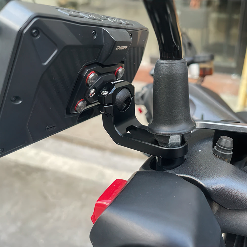 Fix the dash cam to the M8/M10 screw of the motorcycle rearview mirror (M8-18 gasket can be adapted to M8 rearview mirror).