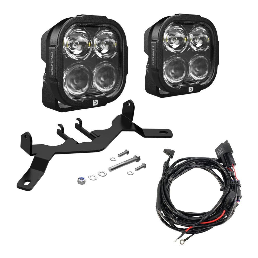 The Essential Lighting Bundle is a vehicle-specific driving light kit that was purpose-built to provide DENALI-level quality and performance at the most economical price point possible. The kit features a pair of our DL4 Driving Lights, our standard powersports harness, and a vehicle-specific upper light mount to position the lights in the ideal location and make installation a breeze.