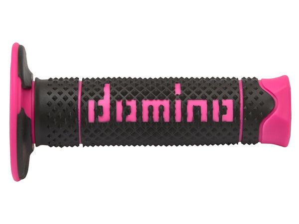A highly advanced thermoplastic dual compound rubber grip by Domino. Thanks to the special multi-pyramidal "coarse dimple" finish, the A260 has an extraordinarily soft and comfortable feel, providing maximum grip in off-road conditions. The central part has a barrel profile providing even better grip, essential when racing. Includes slots for lockwire.