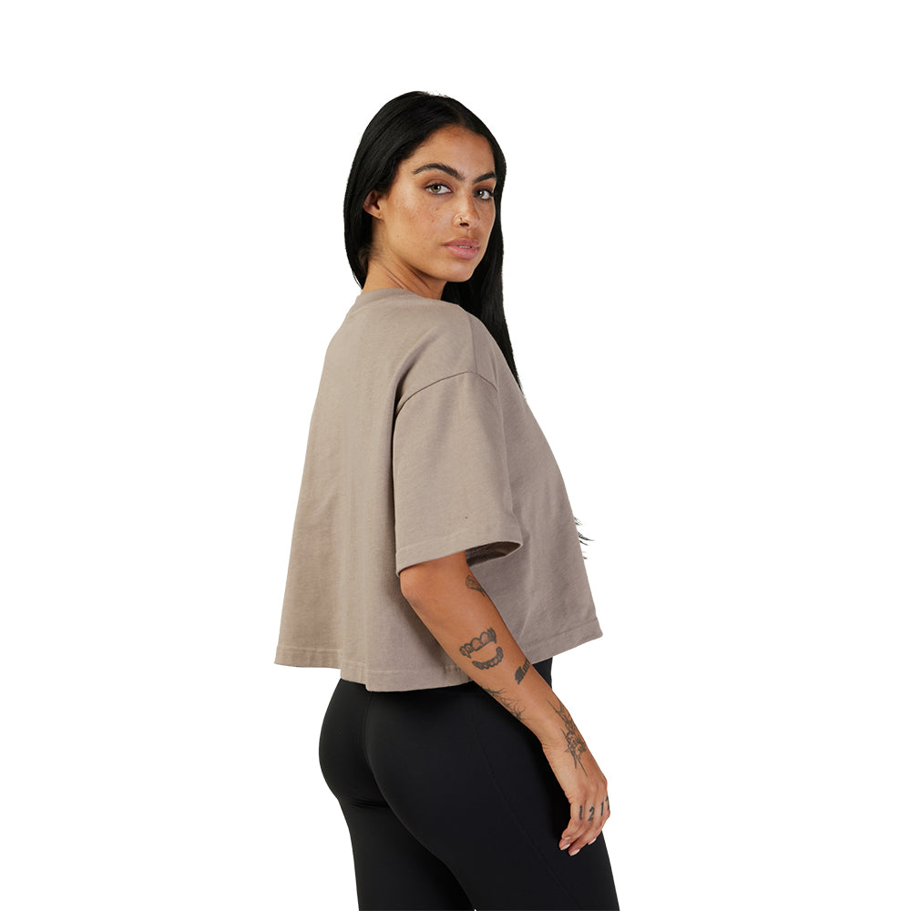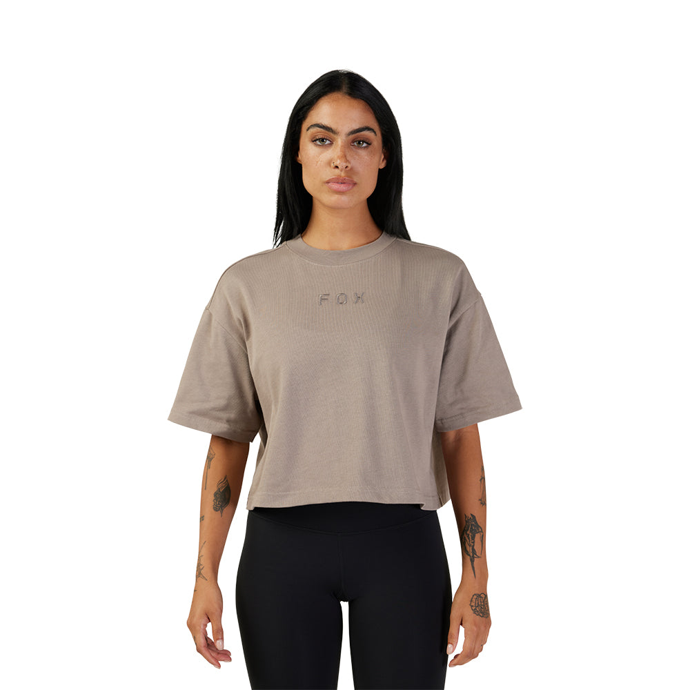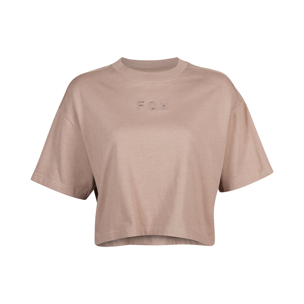FOX WOMENS WORDMARK OS CROP TEE [TAUPE]
