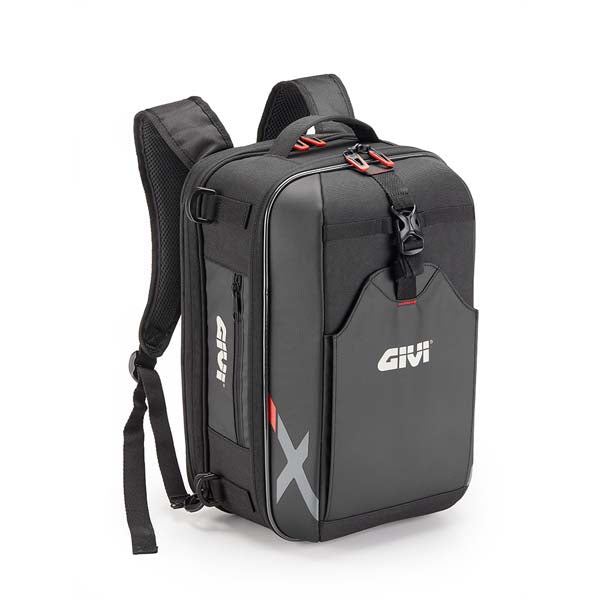 Givi's XL12 is a rugged, water-resistant travel bag that’s compact enough to qualify as airline hand luggage. With a central opening and a waterproof inner bag, it can hold a laptop up to 15 inches, along with accessories in the secondary pocket. Thanks to removable shoulder straps, the backpack can also be mounted on a motorcycle saddle or carried as an additional load on top cases using the supplied straps.