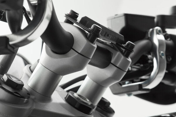 Made of high-quality aluminum alloy, these bar risers raise the handlebars by 20 mm and ensure noticeably greater comfort when driving. Extending the Bowden cables and brake lines is not required.
