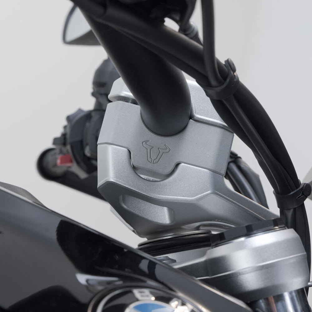 The bar riser made from high-quality aluminum alloy raises the handlebars by 30 mm and ensures noticeably greater riding comfort. Extending the Bowden cables and brake lines is not required.
