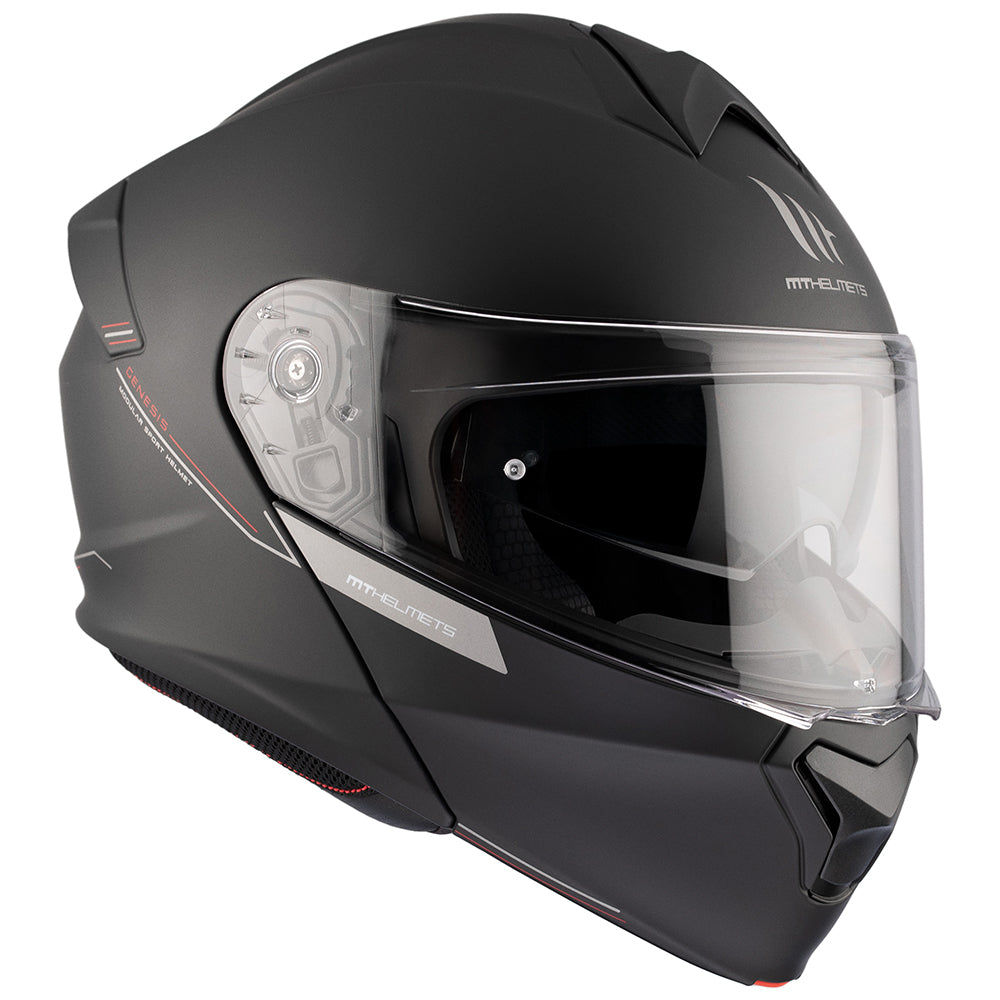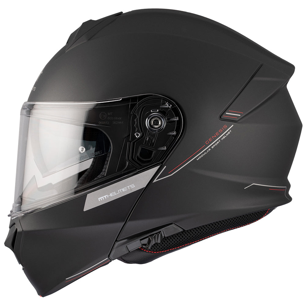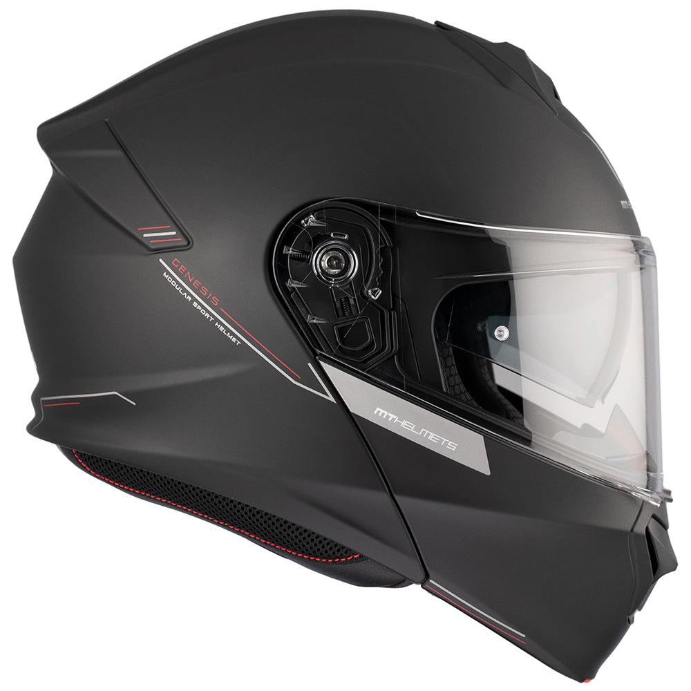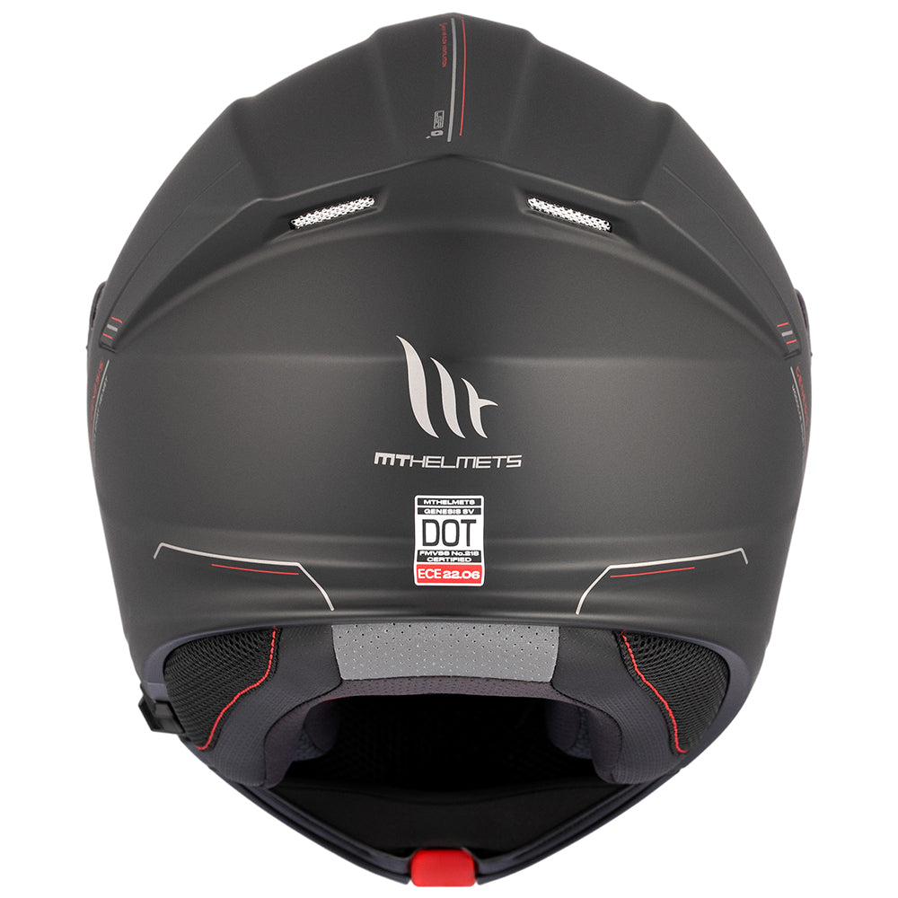 The MT Genesis is the latest update in the MT Helmets collection. The Genesis was designed with the sports and touring market in mind. Thanks to its many options, this helmet is your ideal travel partner for every ride. The motorcycle and scooter helmet is designed with the most modern and best techniques. All this to guarantee safety, protection and comfort during the entire ride. The helmet is equipped with the latest safety standards and meets the ECE-22.06 and DOT approval. This means that the helmet is permitted on public roads throughout Europe and the rest of the world as a motorcycle and scooter helmet. The helmet is equipped with a metal micrometic closure.