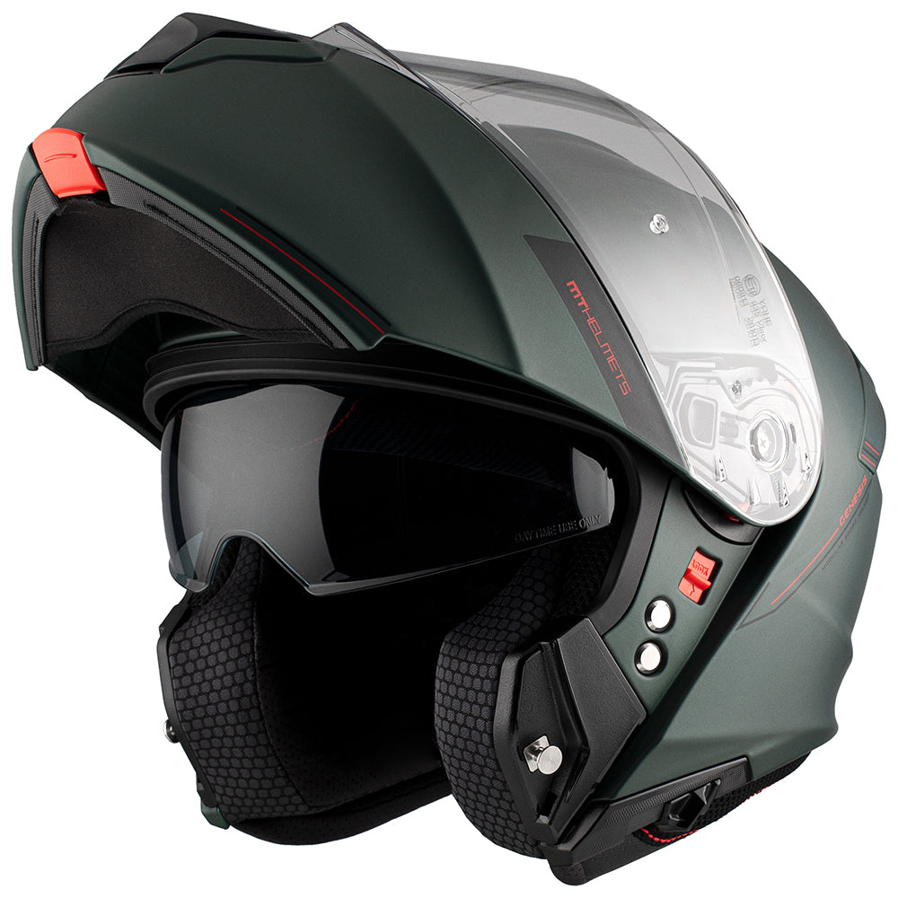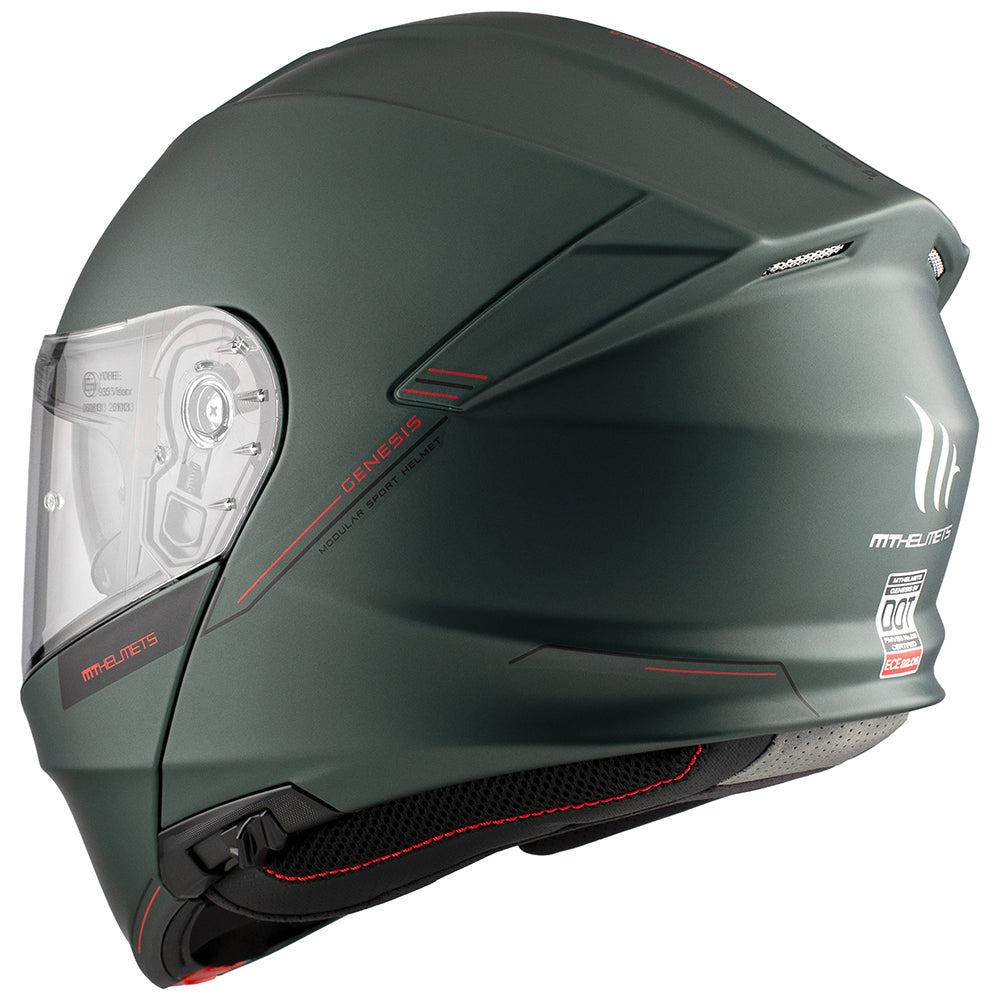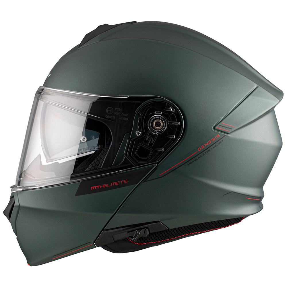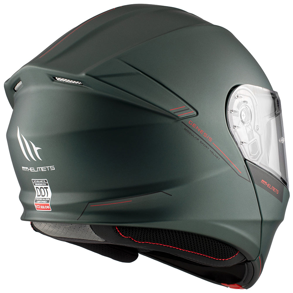 The MT Genesis is the latest update in the MT Helmets collection. The Genesis was designed with the sports and touring market in mind. Thanks to its many options, this helmet is your ideal travel partner for every ride. The motorcycle and scooter helmet is designed with the most modern and best techniques. All this to guarantee safety, protection and comfort during the entire ride. The helmet is equipped with the latest safety standards and meets the ECE-22.06 and DOT approval. This means that the helmet is permitted on public roads throughout Europe and the rest of the world as a motorcycle and scooter helmet. The helmet is equipped with a metal micrometic closure.