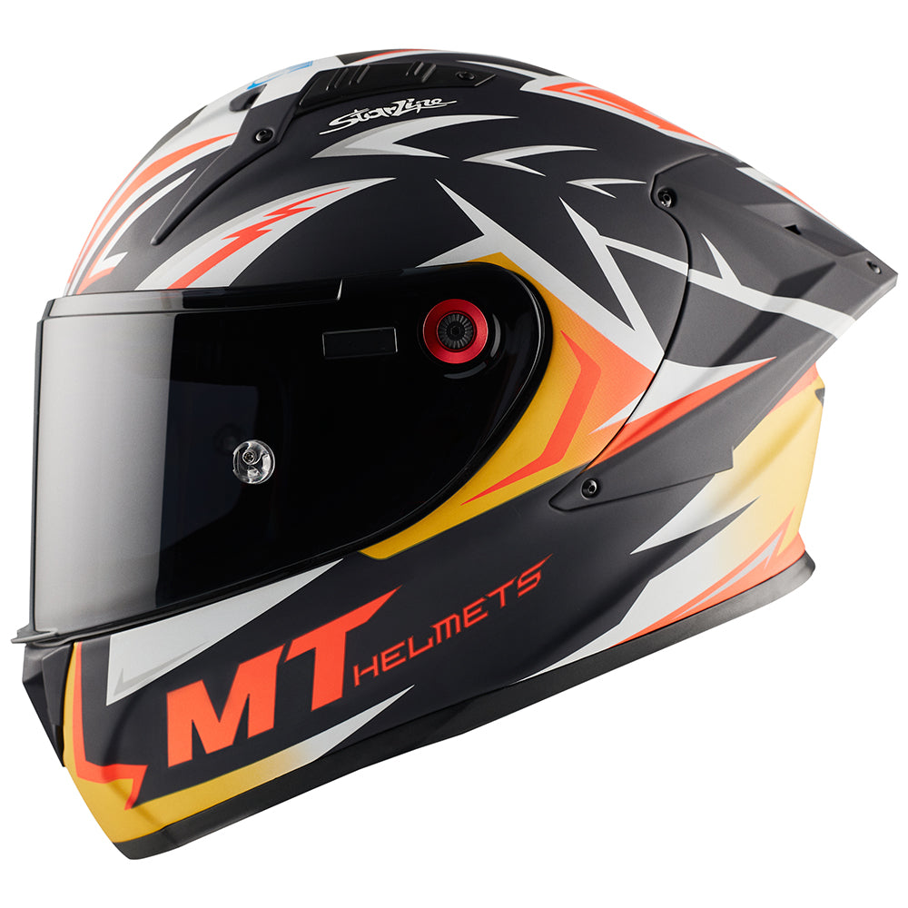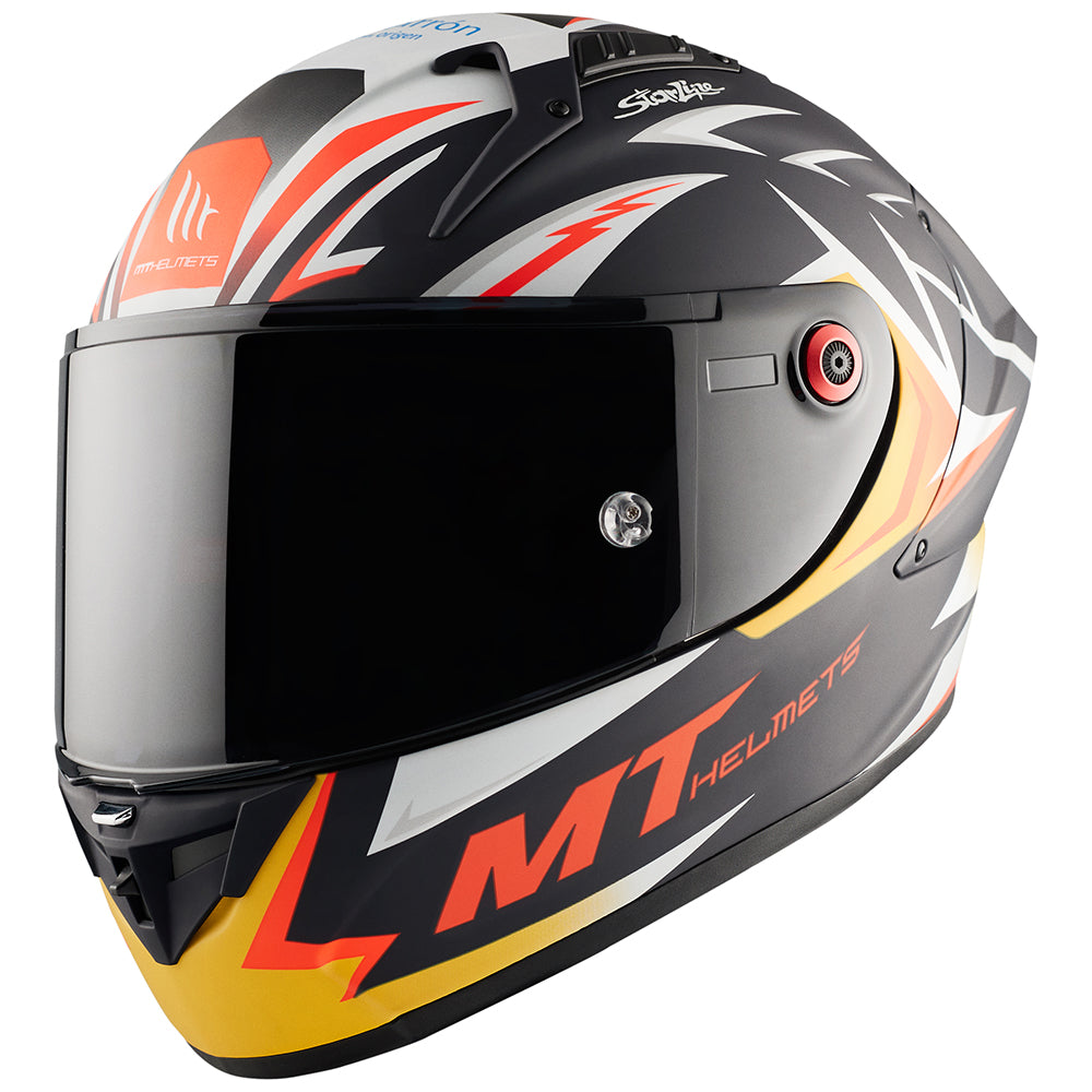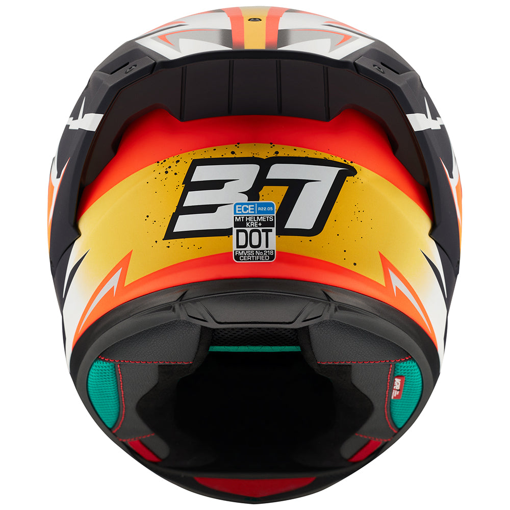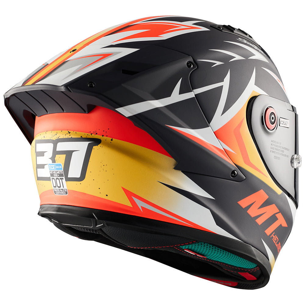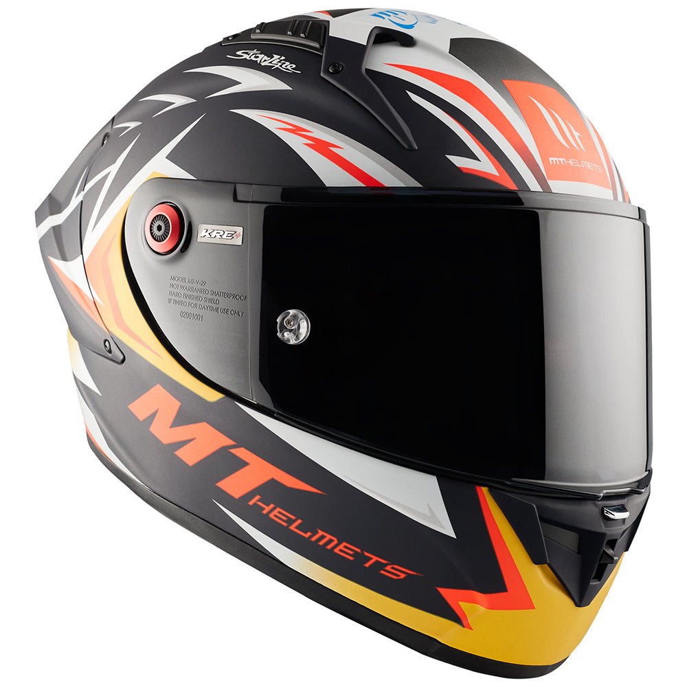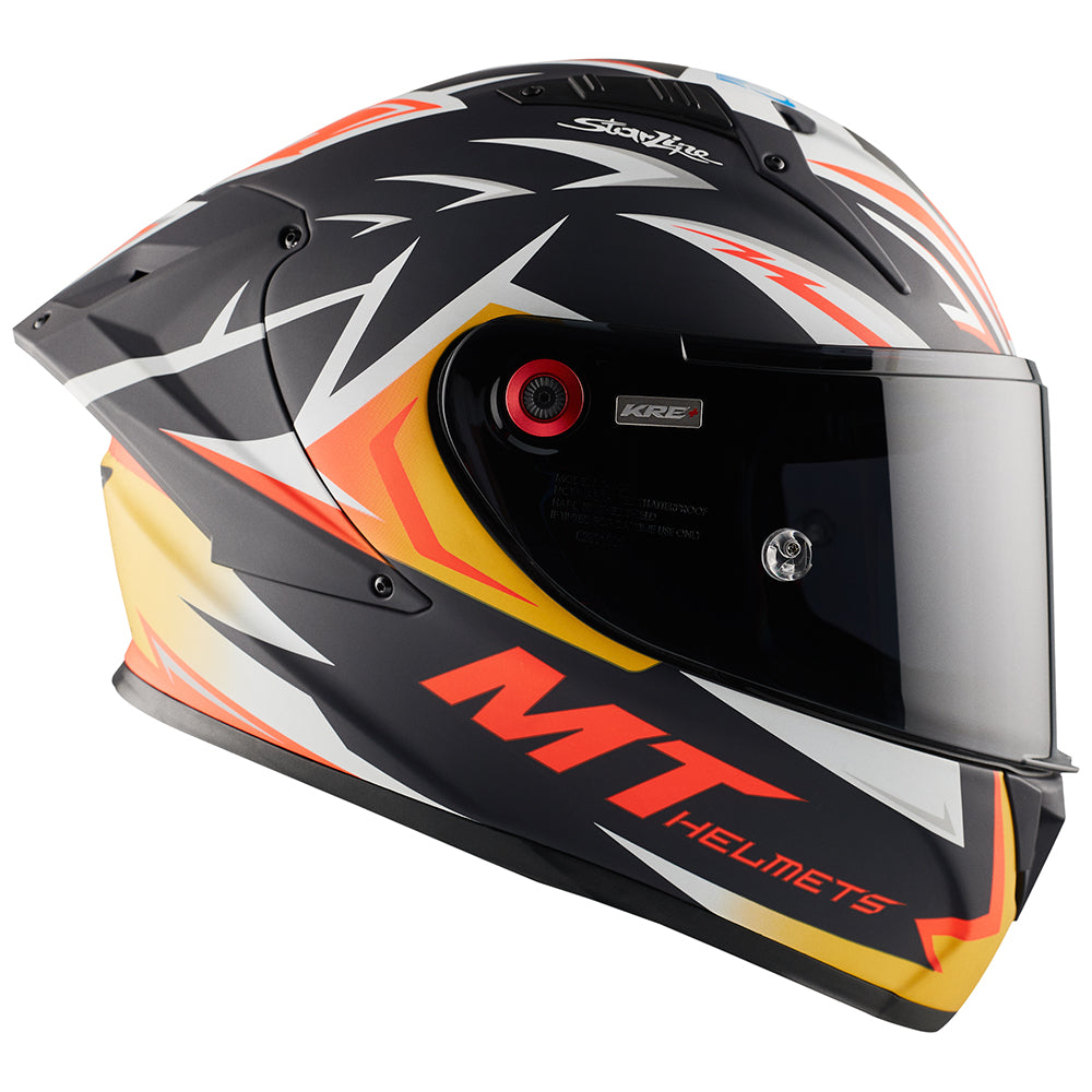 The KRE+ helmet is the highest range of MT Helmets helmets. It has been designed for use in competition, specifically, this is the helmet model that Acosta will uses. It has been approved by the FIM for use on the circuit. Thanks to its triple layer of carbon, it obtain exceptional safety.