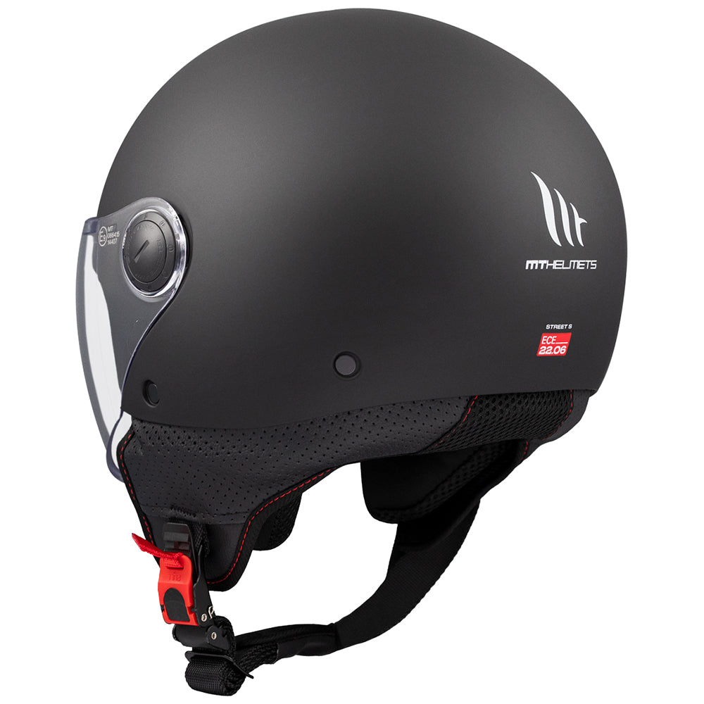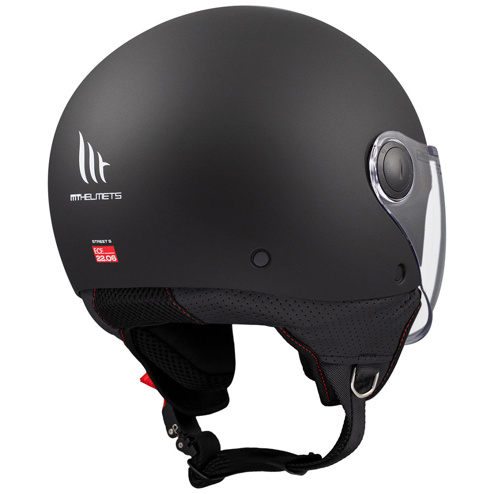 The Street S is the latest entry-level jet helmet from the MT collection. The helmet is the new version of the MT Street (the successor to the MT Zyclo) and meets the latest safety requirements. Thanks to the excellent fit and light weight, the helmet is an excellent option for scooter/moped use. The helmet fits well and does not sit high on the head as most entry level helmets. The helmet will fit most buddy seats and features a clear anti-scratch visor. The Street S is ECE-22.06 approved and therefore meets the strict new safety requirements for road use, as a result it is suitable for use on public roads as a scooter and motorcycle helmet throughout Europe.