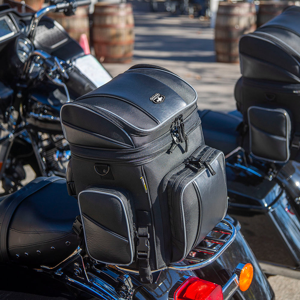 Mounts to Rack, Sissy Bar or Seat: Versatile mounting options.