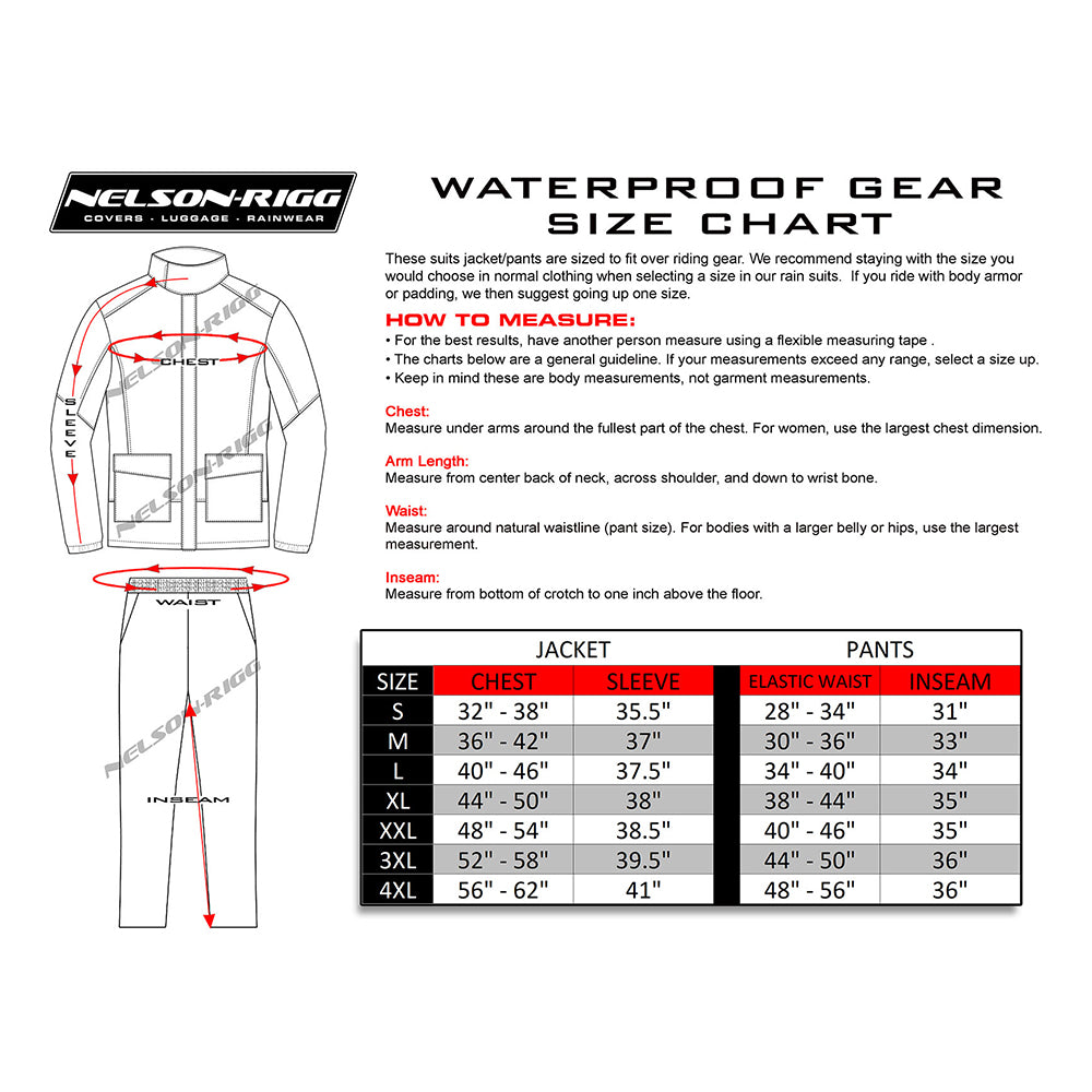 Stay dry and comfortable in the weather with the Nelson Rigg Weatherpro 2-Piece Rainsuit. This comprehensive rain gear includes both a jacket and pants, designed to provide waterproof protection and comfort for every ride.