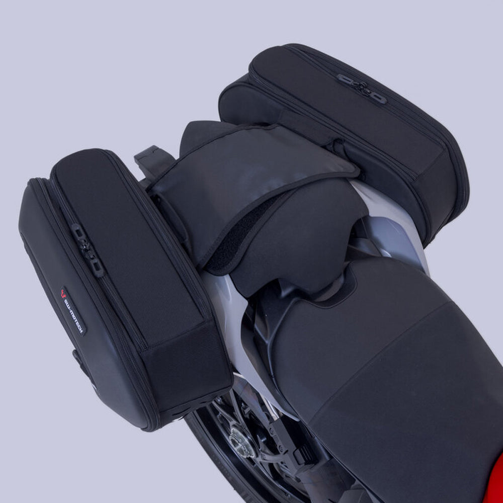 The high version of the PRO BLAZE saddlebags was specially developed for motorcycles with a high exhaust pipe. Due to the raised position, the bags are not affected by the heat emitted from the exhaust. SW-MOTECH produces this bag set with the matching support arms for the Ducati Streetfighter V4 / S.