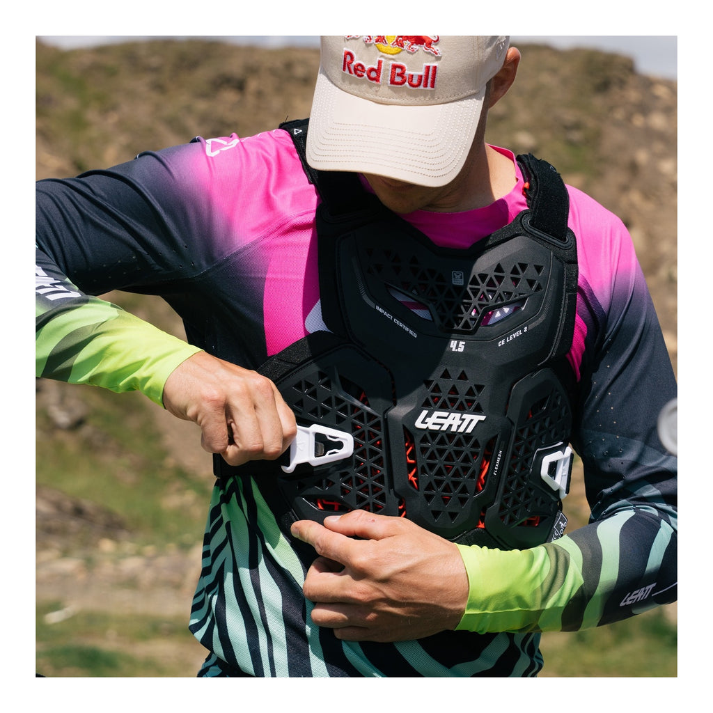 The new Hybrid range, specifically designed for Moto, features a hard shell chest protector to handle roost and a soft shell back protector for extra comfort. The 4.5 Hybrid Chest Protector combines a lightweight, ventilated hard shell chest with FlexMesh Pro impact protection, while the back uses soft 3DF impact foam that forms to the body for comfort and ventilation. The FlexMesh Pro and 3DF design make excellent use of flex joints and soft impact foams, allowing for 3D flexing and an exceptional fit. An elastic strap ensures secure positioning, and the BraceOn system allows seamless neck brace integration.