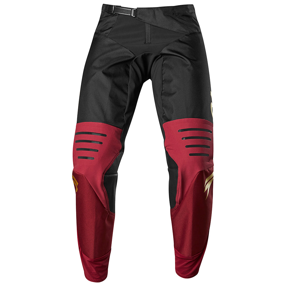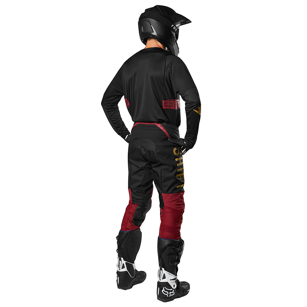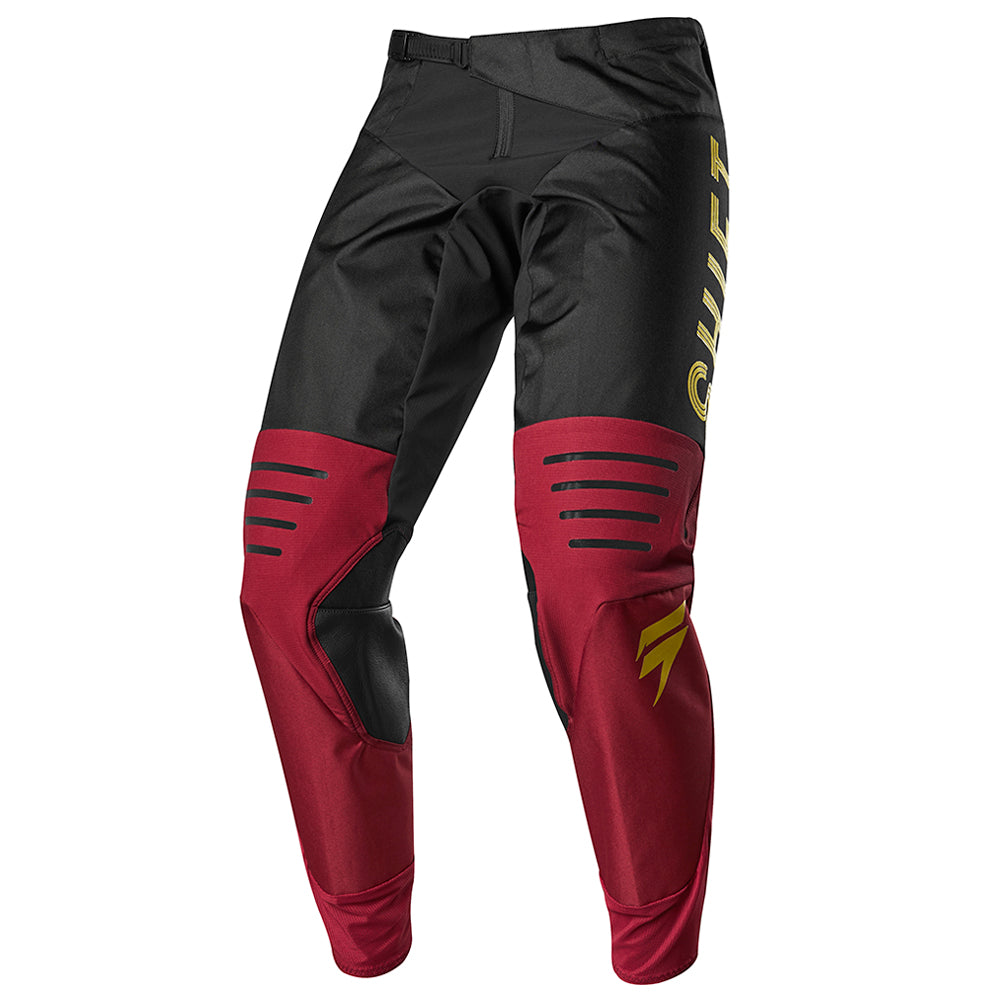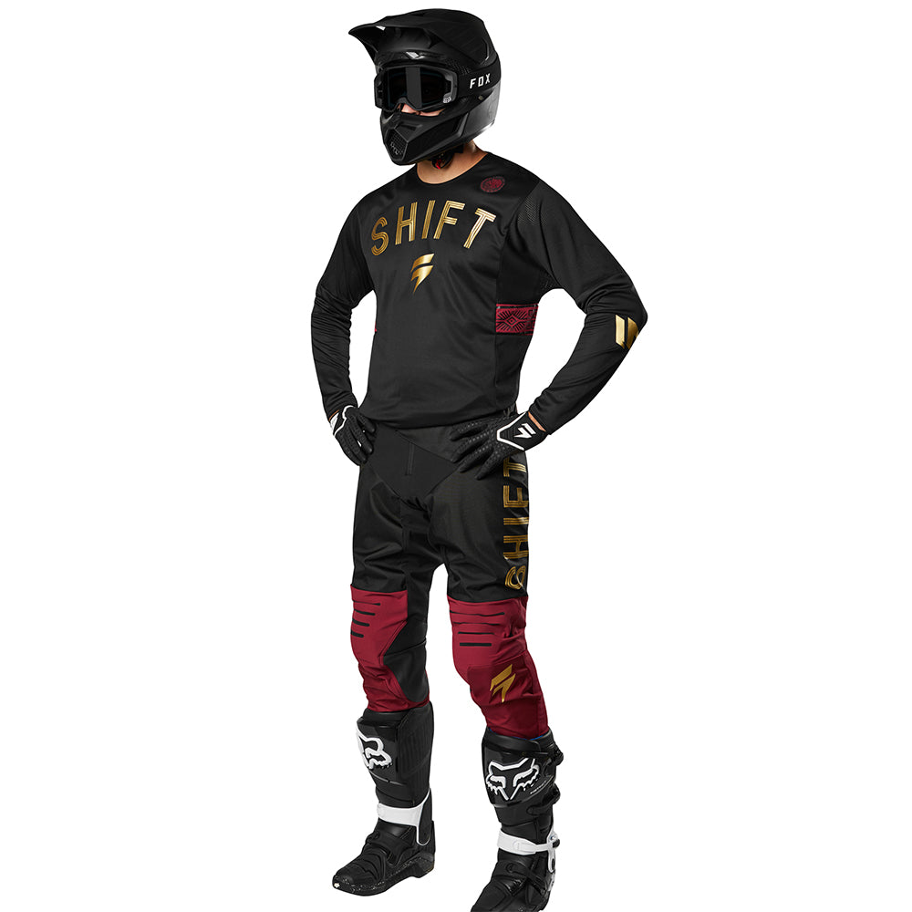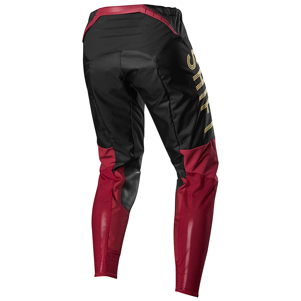 Introducing the 3LACK Label Pants from our Mexico Collection. The second drop in a series of four destination-inspired collections, this limited edition gearset celebrates the Dia de Los Muertos festival in the city of Guadalajara, Mexico. The pant's aesthetic takes cues from the historic cathedrals and their decorative gold details, the red brick buildings found throughout the city, and the black costumes worn during the festival. Fittingly, the racewear is cloaked in black, and accented with dark brick red and contrasting gold trim for a look that is sure to stand out.