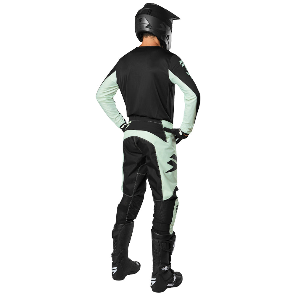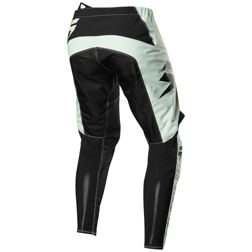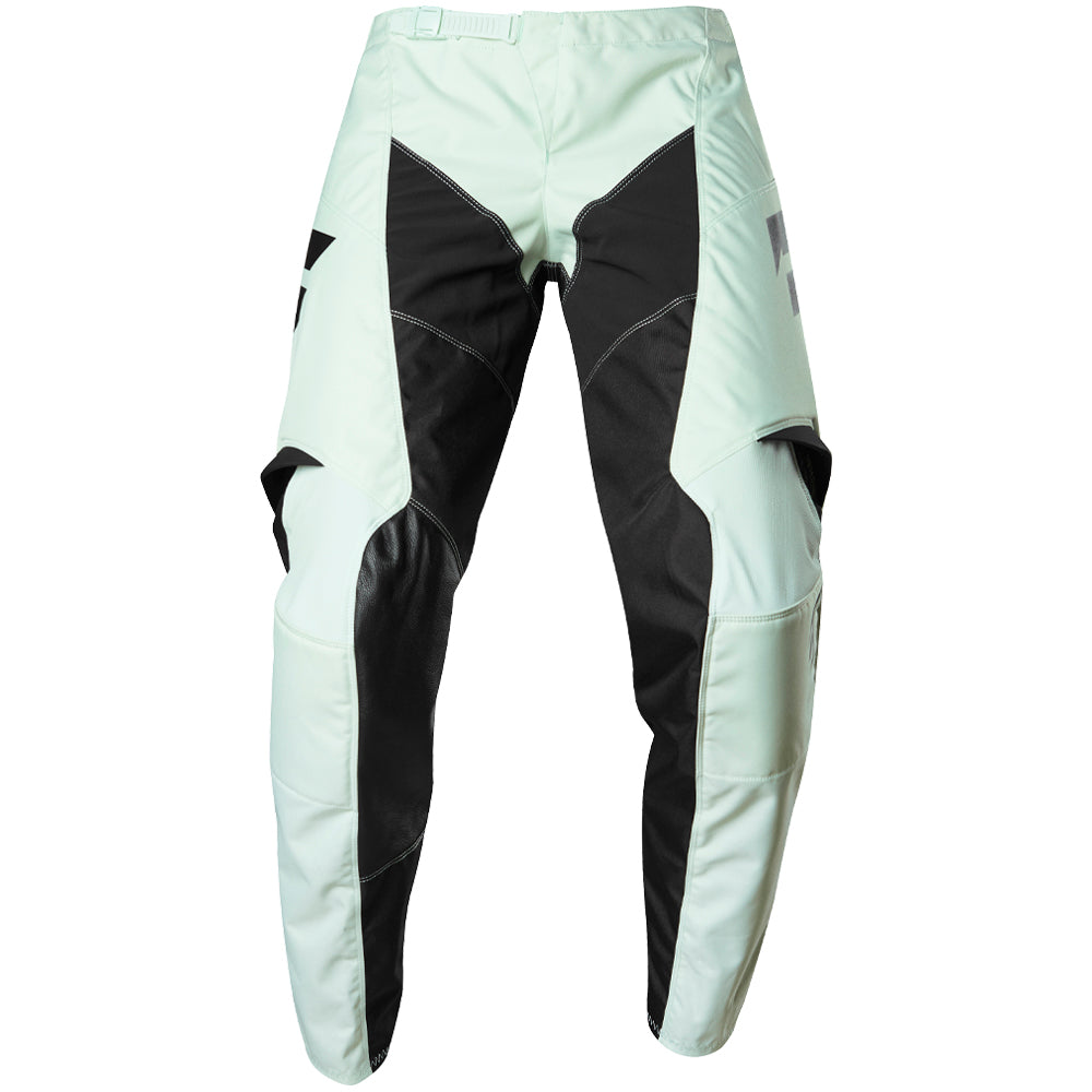 The pant's design centers around a rugged 600D main body construction for an excellent balance of strength and weight. This is amplified by smart details to improve fit and functionality, such as, stretch zones in the waist, back panel, and lower leg that allow the pants to move with you without feeling inhibiting. The articulated knees and hip put you in the ideal riding position. And low-profile mesh paneling on the lower leg improves comfort inside the boot. A padded knee construction increases comfort and durability, while leather on the right knee brings abrasion and heat resistance.