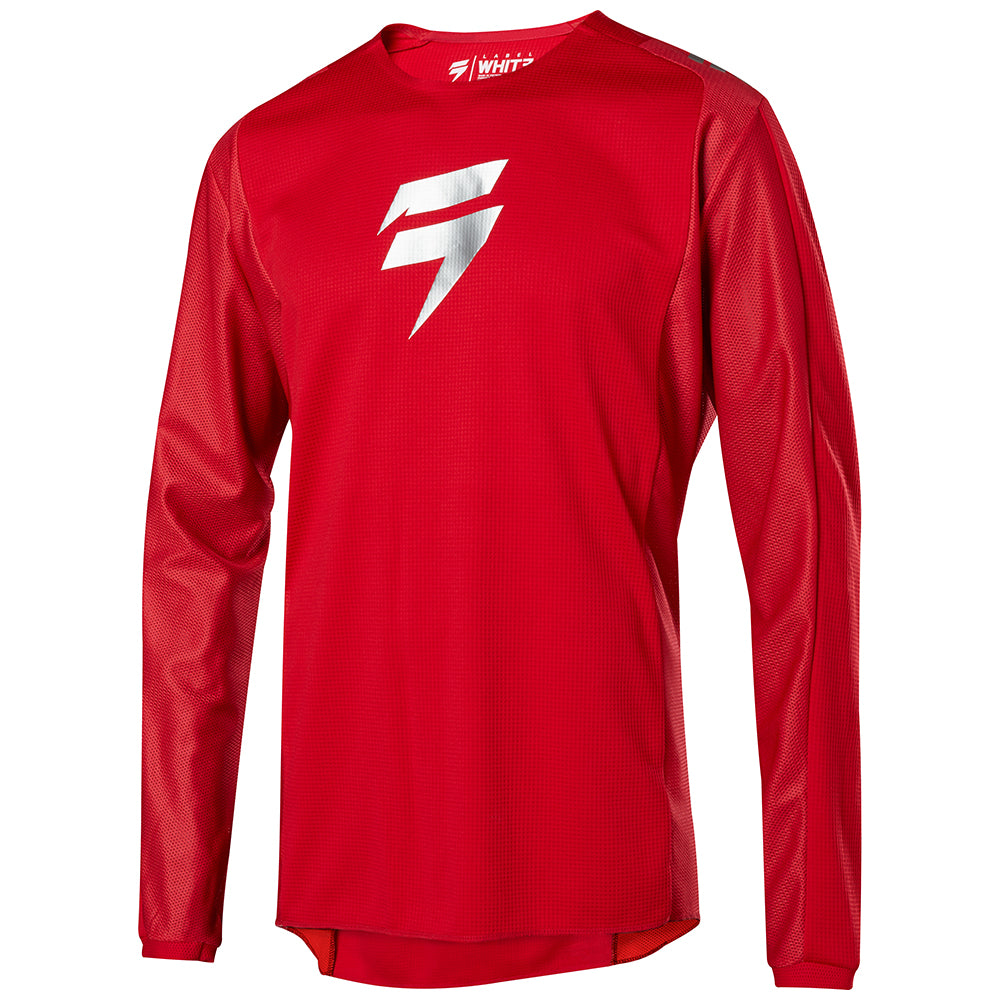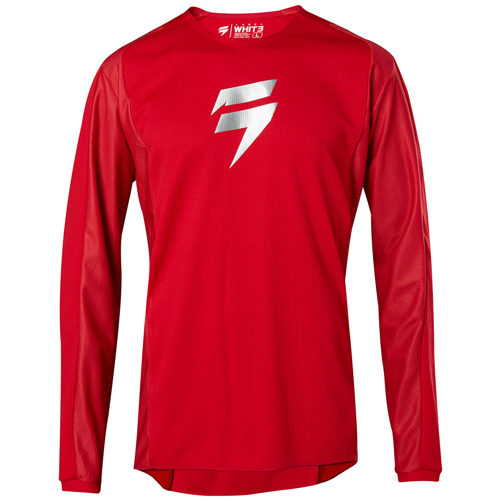 Factory to the last drop. In deep red with a premium Shift bolt logo application on the chest, the limited edition WHITE Label Bloodline Jersey gives you more of what you need and less of what you don’t. The main body fabric is lightweight, yet durable and features wicking properties to keep you drier and cooler during your ride. An easy-fitting silhouette keeps you relaxed and uninhibited on the bike. And ventilated side panels deliver unreal comfort all season long.