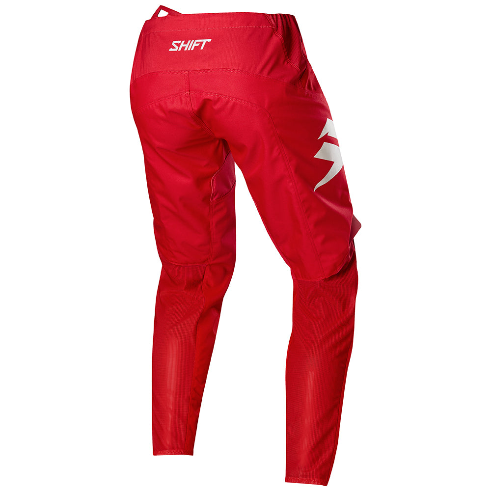 Factory to the last drop. In deep red with a premium Shift bolt logos on the outer legs, the limited edition WHITE Label Bloodline pant gives you more of what you need and less of what you don’t with a focus on flexibility, ventilation, and durability. The articulated knee and hip design conform to you while on the bike for increased performance while multiple 4-way stretch fabric zones throughout the pant ensure mobility and comfort.