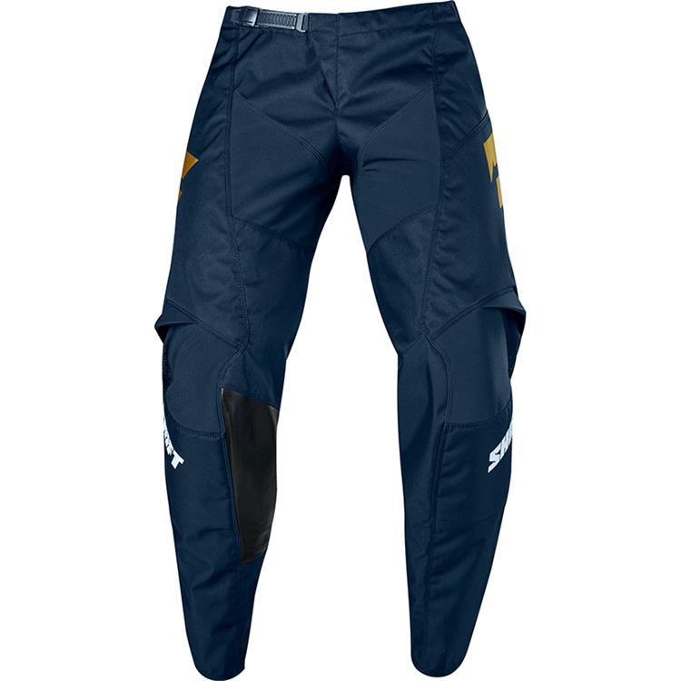 The pant design centers around a rugged 600D main body construction for an excellent balance of strength and weight. This is amplified by smart details to improve fit and functionality, such as, stretch zones in the waist, back panel, and lower leg that allow the pants to move with you without feeling inhibiting. The articulated knees and hip put you in the ideal riding position. And low-profile mesh paneling on the lower leg improves comfort inside the boot. A padded knee construction increases comfort and durability, while leather on the right knee brings abrasion and heat resistance.