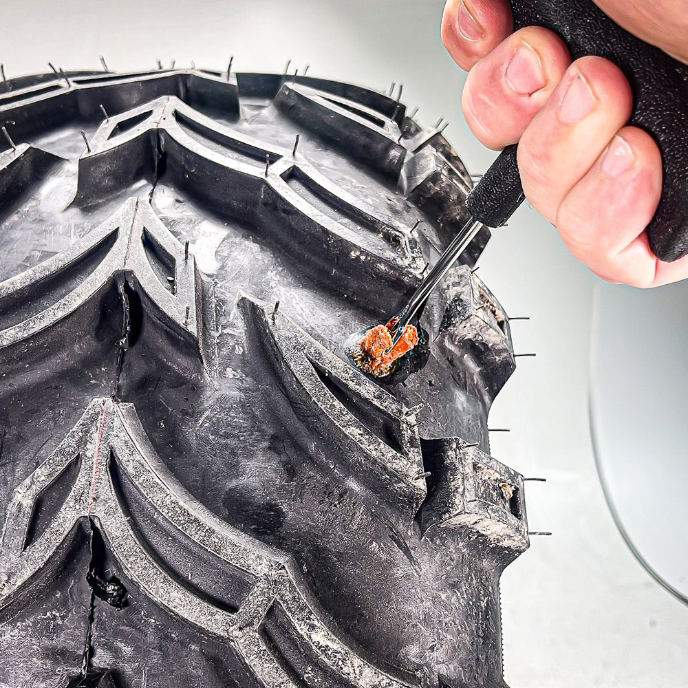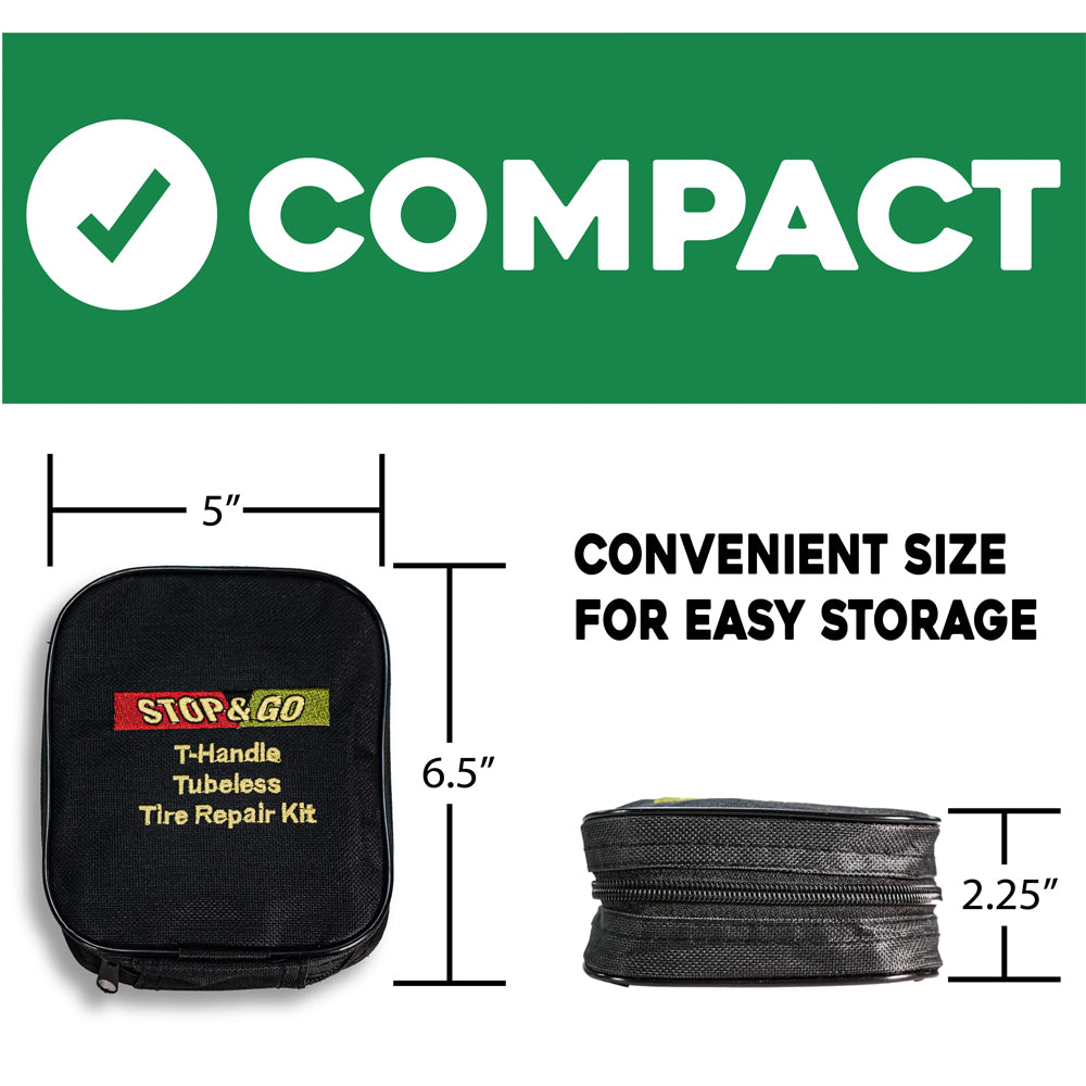 Sometimes tubeless tires can sustain damage that is beyond the ability of a mushroom plug. A tear from jagged items can require the use of what is known as a string or rope plug. This kit comes with (20) twenty brown rubber reinforced inserts 4 inches in length each. Along with the sturdy T-Handle Reamer and Insertion Tool is a tube of rubber cement, retractable razor blade, full repair instructions and a durable zippered canvas bag.