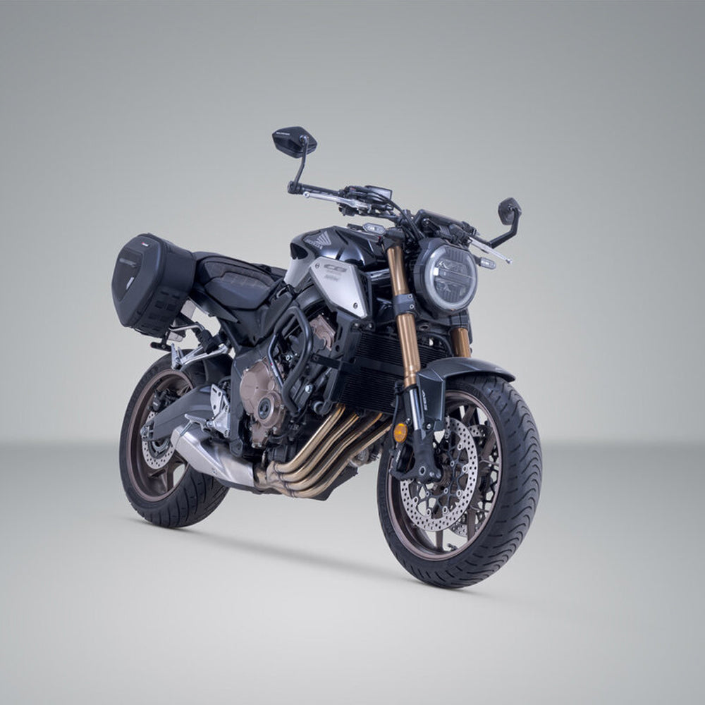 The high version of the PRO BLAZE saddlebags is specially designed for motorcycles with a higher positioned exhaust. Due to the elevated position, the bags are not affected by the heat radiation of the exhaust. SW-MOTECH manufactures this bag set and matching support arms for the Honda CB650R CBR650R