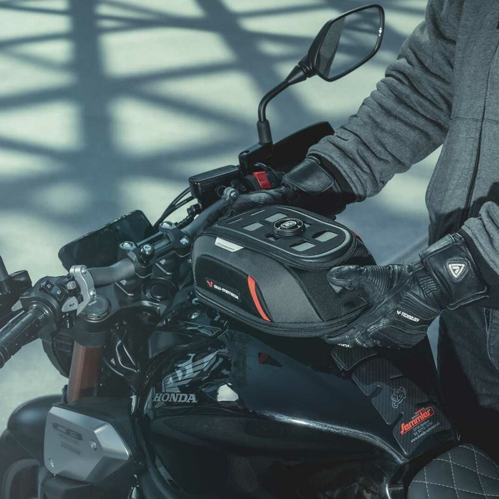 The waterproof smartphone Drybag is suitable for any PRO tank bag. The holder's plastic cover with a large clear PVC window and internal dimensions of 170 x 100 mm is suitable for almost all common smartphones up to a size of 6.7 inches.The smartphone is attached to the tank bag via the T-Lock mount. You can adjust the position of the T-Lock holder on the MOLLE attachment to suit your needs. You can find detailed information on how to attach the T-Lock to the MOLLE attachment in the operating instructions. Once the T-Lock holder is fitted, the Smartphone Drybag can be released with a quarter turn when needed. This way the device can be removed in just one step.