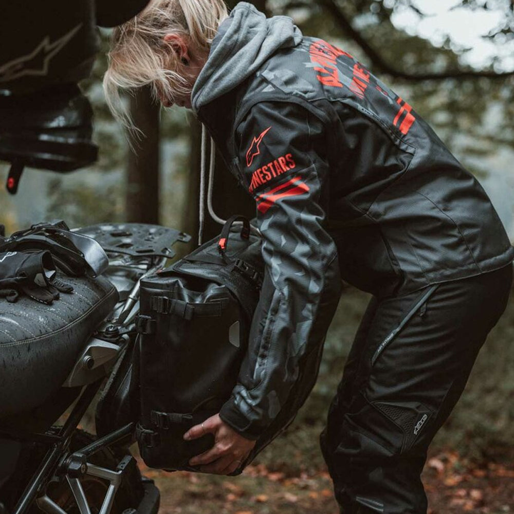The SysBag WP L is designed for off-road use without exception: the belt buckles of the front compartment are deliberately attached to the top so that no branches can get caught on narrow paths. The outer edges of the bag are covered with robust Hypalon material, which provides additional protection in the event of a fall. With the four compression straps on both sides, the bag can be lashed to form a compact unit, even with a small load.