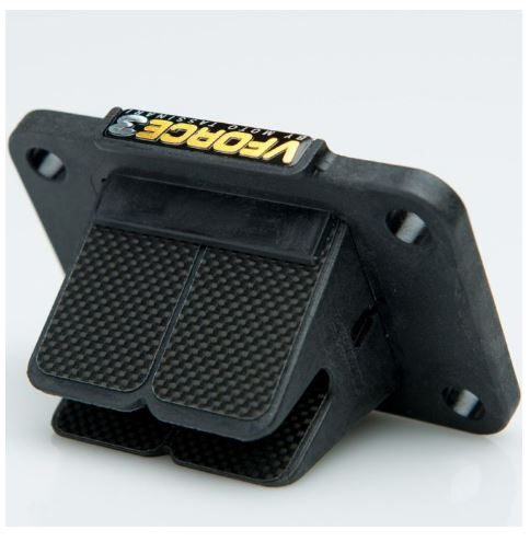 The unique design of the VForce reed valve system features double the reed tip surface over a conventional reed valve design. This has two major benefits: 1) The reed petals only travel half the distance as a conventional reed valve design to get the same airflow. 2) Because the reed petals only need to travel half the distance of that on a conventional reed valve design, there is a greater chance of them being fully opened as well as a better chance of sealing when they are "closed". A reed petal never truly "closes" in a classic sense, as it is always in movement. Consider this, an engine operating at 8,000 RPM results in a reed petal opening and closing 133 times in one second. This fact, sheds light on another VForce advantage. Since the petals are only traveling half the distance, they generally last longer as they receive less wear than the reed petals on a conventional reed valve design.