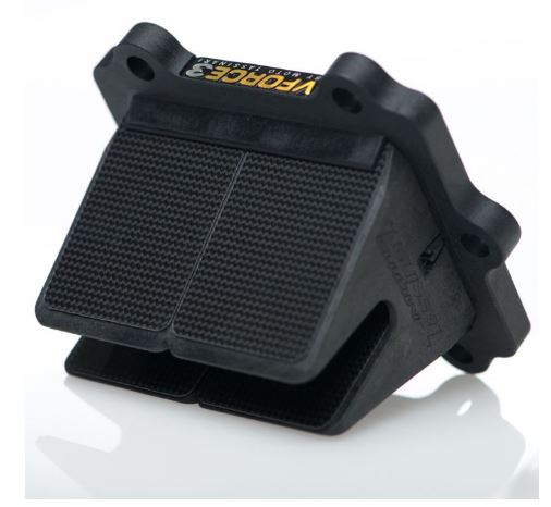 The unique design of the VForce reed valve system features double the reed tip surface over a conventional reed valve design. This has two major benefits: 1) The reed petals only travel half the distance as a conventional reed valve design to get the same airflow. 2) Because the reed petals only need to travel half the distance of that on a conventional reed valve design, there is a greater chance of them being fully opened as well as a better chance of sealing when they are "closed". A reed petal never truly "closes" in a classic sense, as it is always in movement. Consider this, an engine operating at 8,000 RPM results in a reed petal opening and closing 133 times in one second. This fact, sheds light on another VForce advantage. Since the petals are only traveling half the distance, they generally last longer as they receive less wear than the reed petals on a conventional reed valve design.